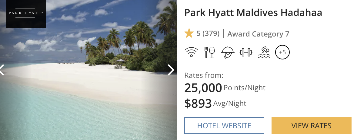 As another example of what's possible, transferring 25,000 Ultimate Rewards to your World of Hyatt account could pay for a night at the stunning Park Hyatt Maldives Hadahaa. Hello dream vacation!